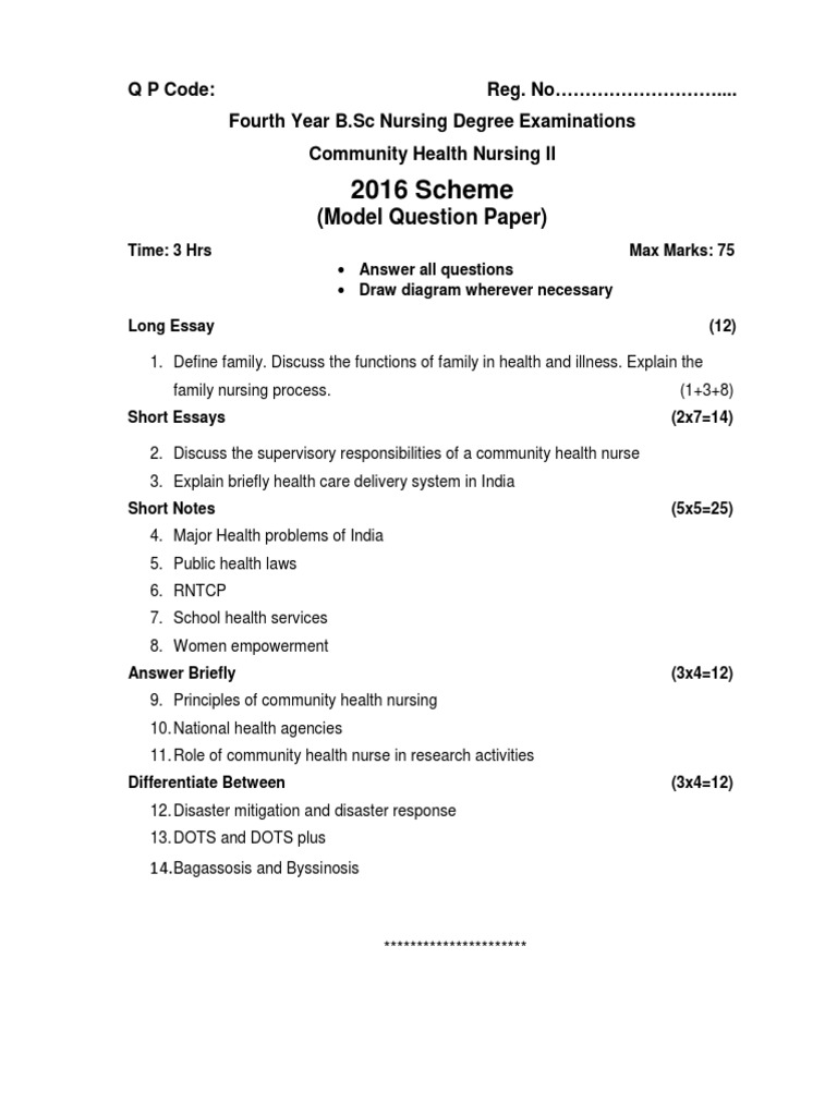 Community Health Nursing 2nd Question Paper B Sc Nursing 4th Year Exam Jan 2018 Youtube