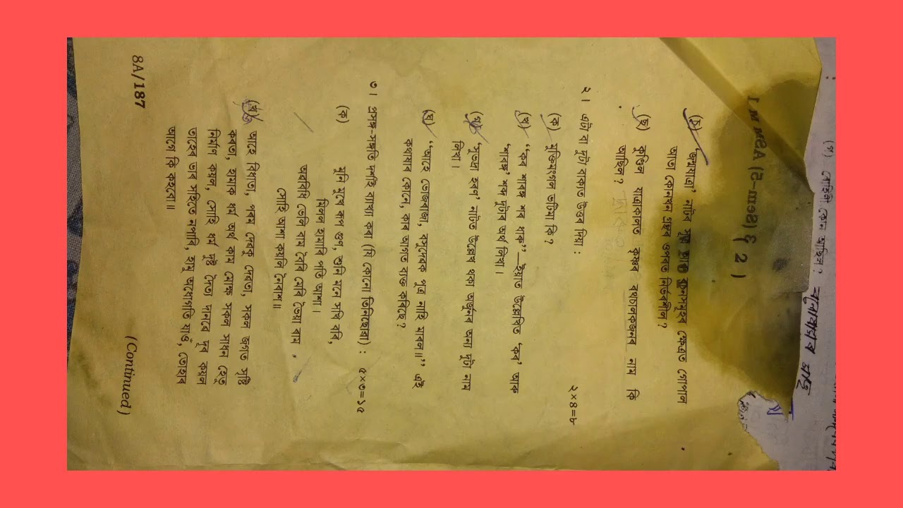 Gauhati University B A 5th Semester Assamese Major Question Paper 5 1 2016 2018 Youtube