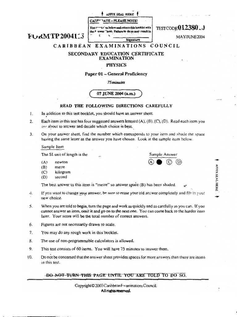 Physics CXC Paper 1 Practice Questions. Get Free Cxc Physics Past Papers And Answers Physics syllabus. CSEC Physics Answers to revision questions 1 Scientific method 1.